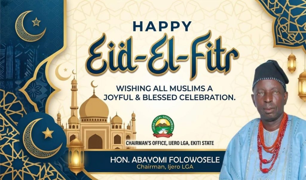 The Executive Chairman of Ijero Local Government, Hon. Julius Abayomi Folowosele, has extended warm greetings to Muslim faithful on the occasion of Eid al-Fitr, marking the successful completion of the holy month of Ramadan.